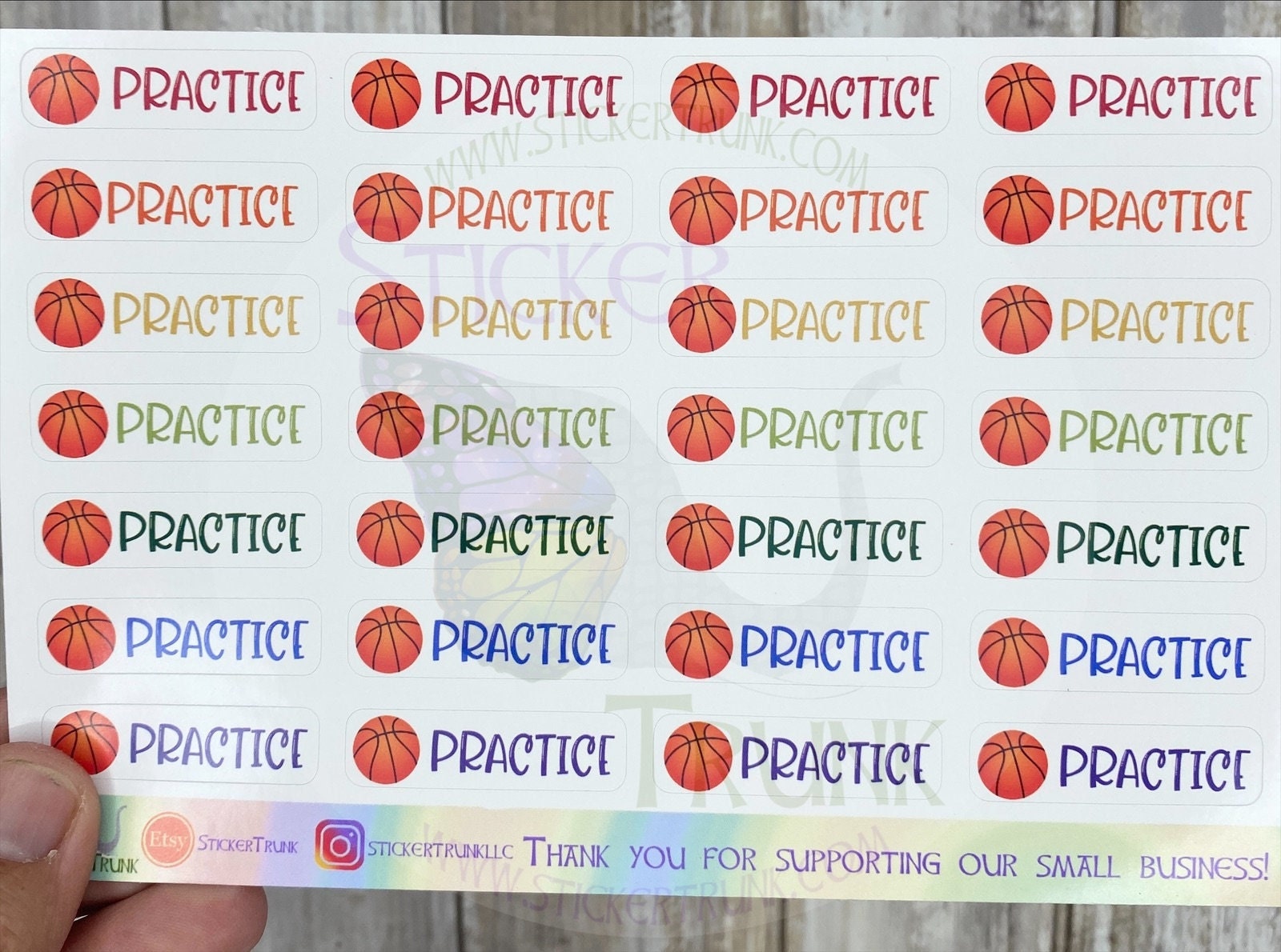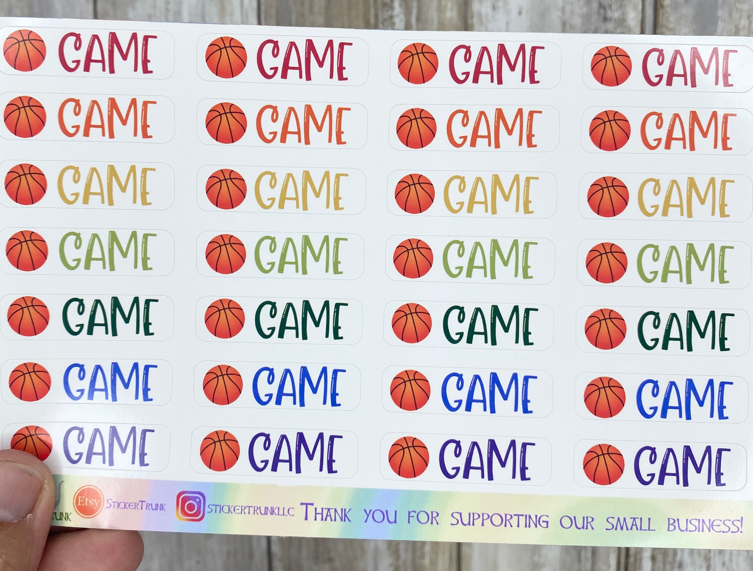 *Choose from: ~Sheet of Basketball icons / balls ~Sheet of Game Stickers ~Sheet of Practice Stickers ~Sheet of Write-on Box Stickers