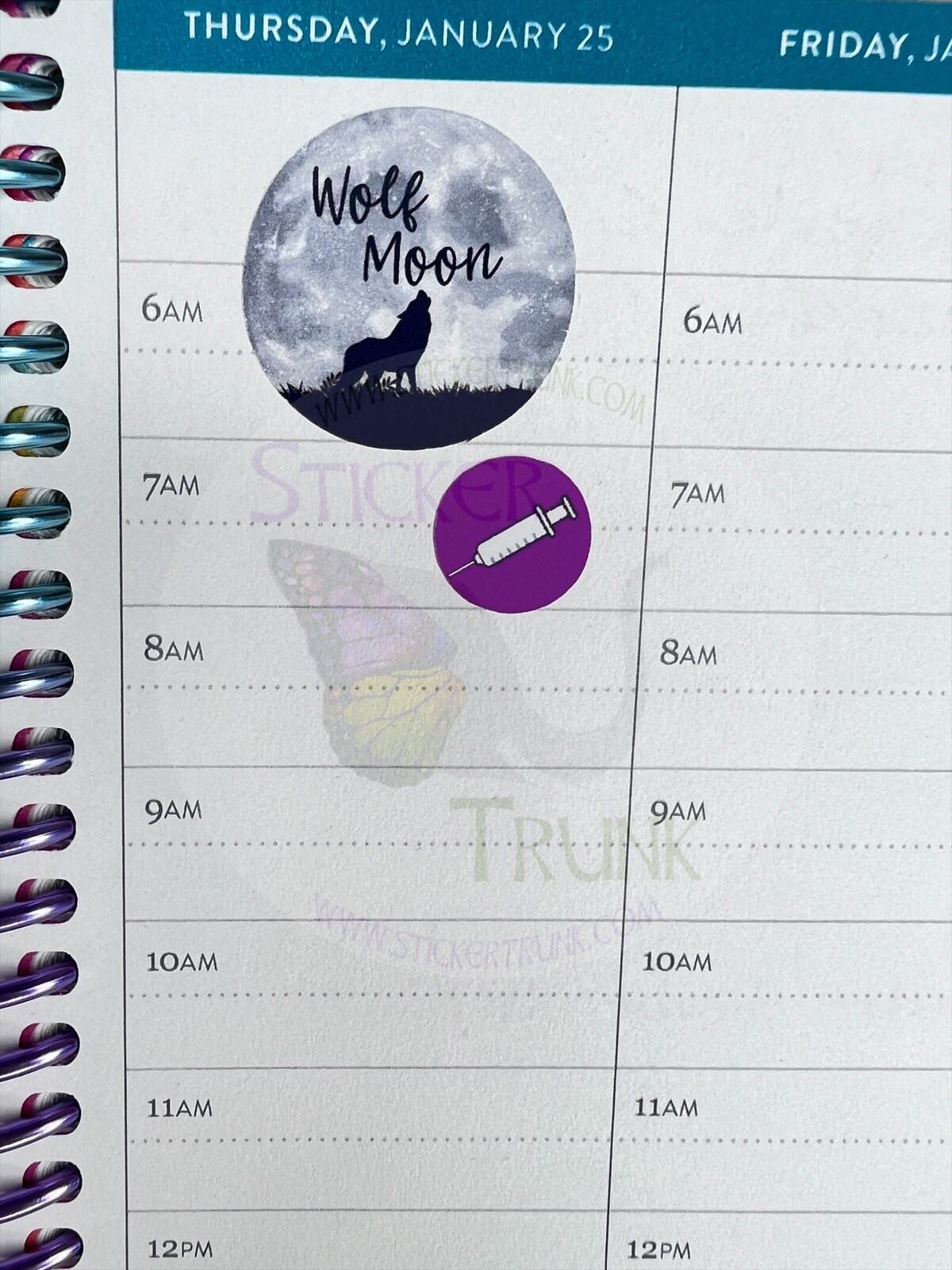 Gift for my ADHD wife. These make it obvious to her that she needs her weekly hormone shot, but if a friend or co-worker happens to see her calendar, it’s not obvious she is on HRT. (I got her permission to say this.) It’s a relief, that I can have this out in the open and not be embarrassed. It’s very cute and if she needs to move her shot day, which she often does, she isn’t as gripped by anxiety. Even better, she no longer does that ADHD thing where she just forgets to take it for weeks. She loves that she can just lift the matte sticker, that doesn’t mark the page, to a new day. It leaves her feeling that forgetting is a neutral event instead of something to flagellate over. They make me happy and alleviate stress in ways I had not anticipated.